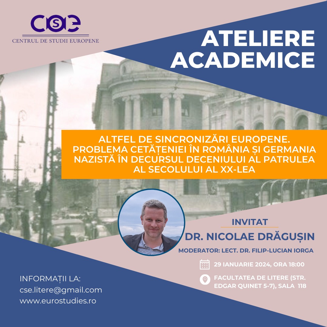 Programul Ateliere Academice constă într-o serie de conferințe lunare, susținute de specialiști din zona studiilor umaniste și sociale, pe teme de interes general, atât pentru studenții cât și pentru comunitatea academică în sens larg. Scopul programului este acela de a facilita transferul de cunoaștere în cadrul comunității academice și de la specialiștii din zona de cercetare către studenți și public.