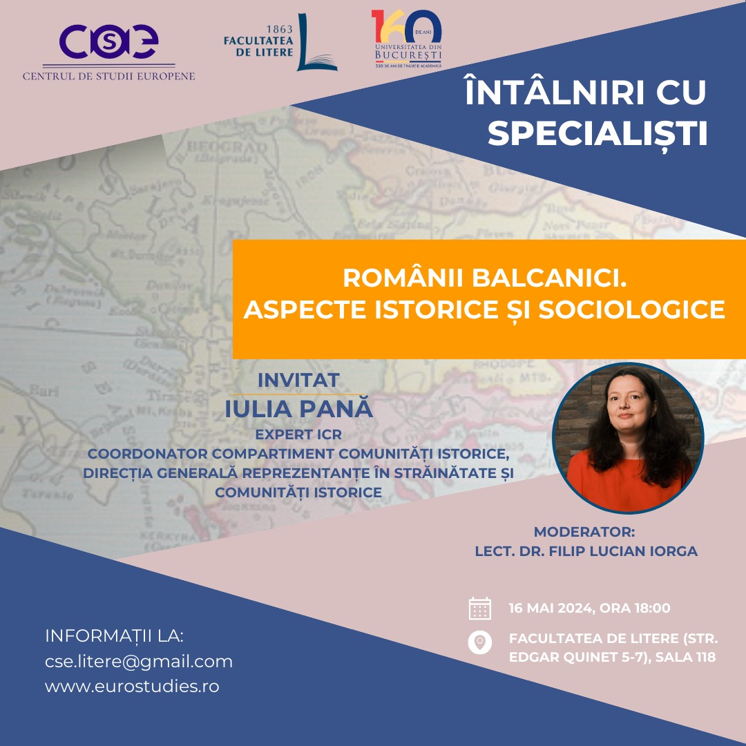 Această serie de evenimente oferă participanților ocazia de a se familiariza cu cercetările și dezvoltările actuale din sfera studiilor europene, cu accente pe aspectele culturale și relațiile internaționale. Specialiștii noștri invitați vor aborda subiecte variate, de la evoluții politice și economice în cadrul Uniunii Europene, la impactul cultural al proceselor de integrare și colaborare internațională. Omisă nu va fi nici istoria (în accepțiunile ei ample) europeană, inclusiv premodernă și modernă.