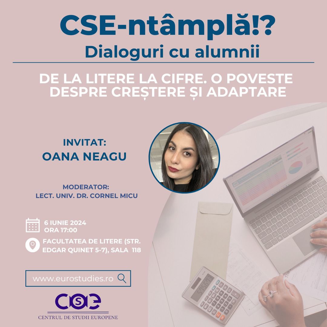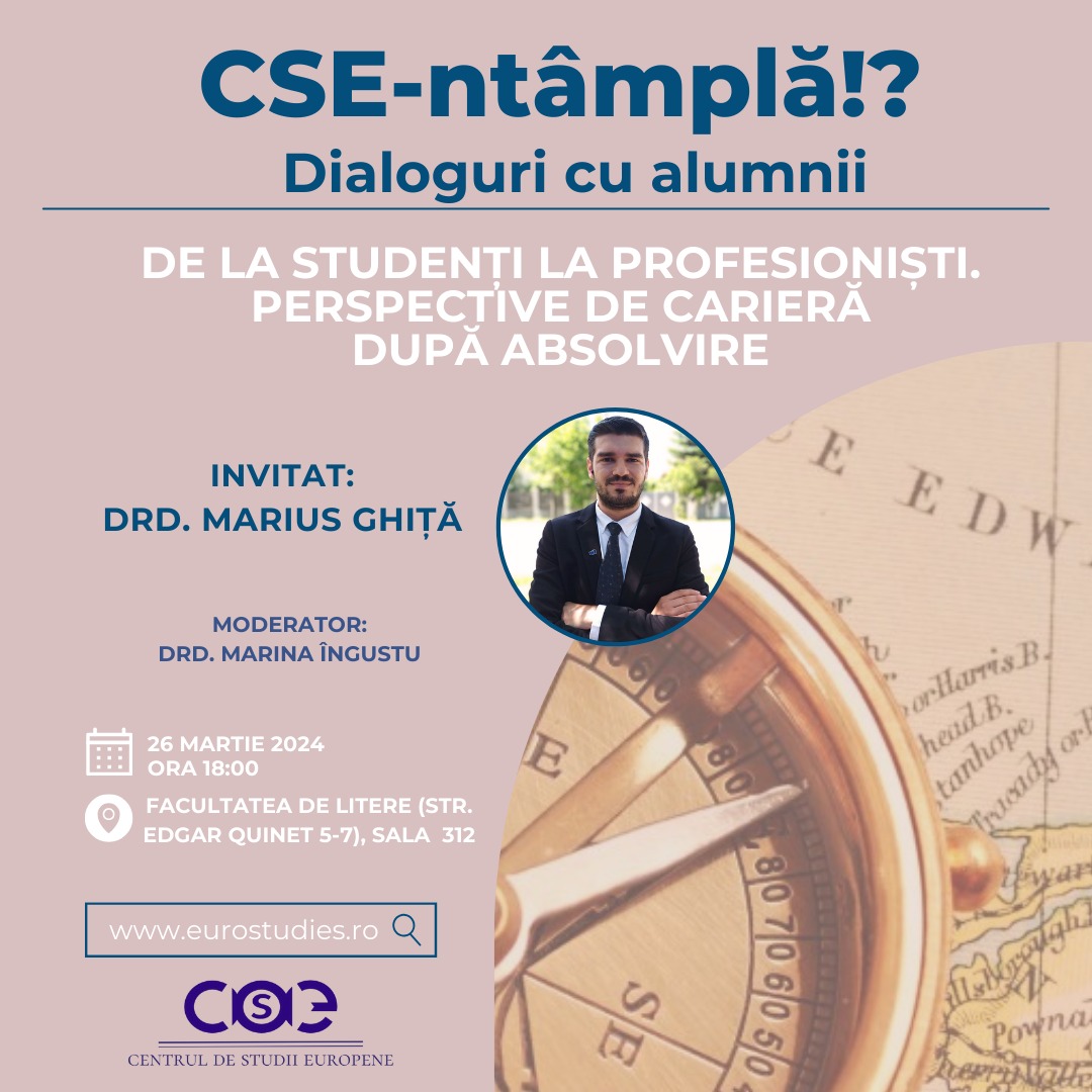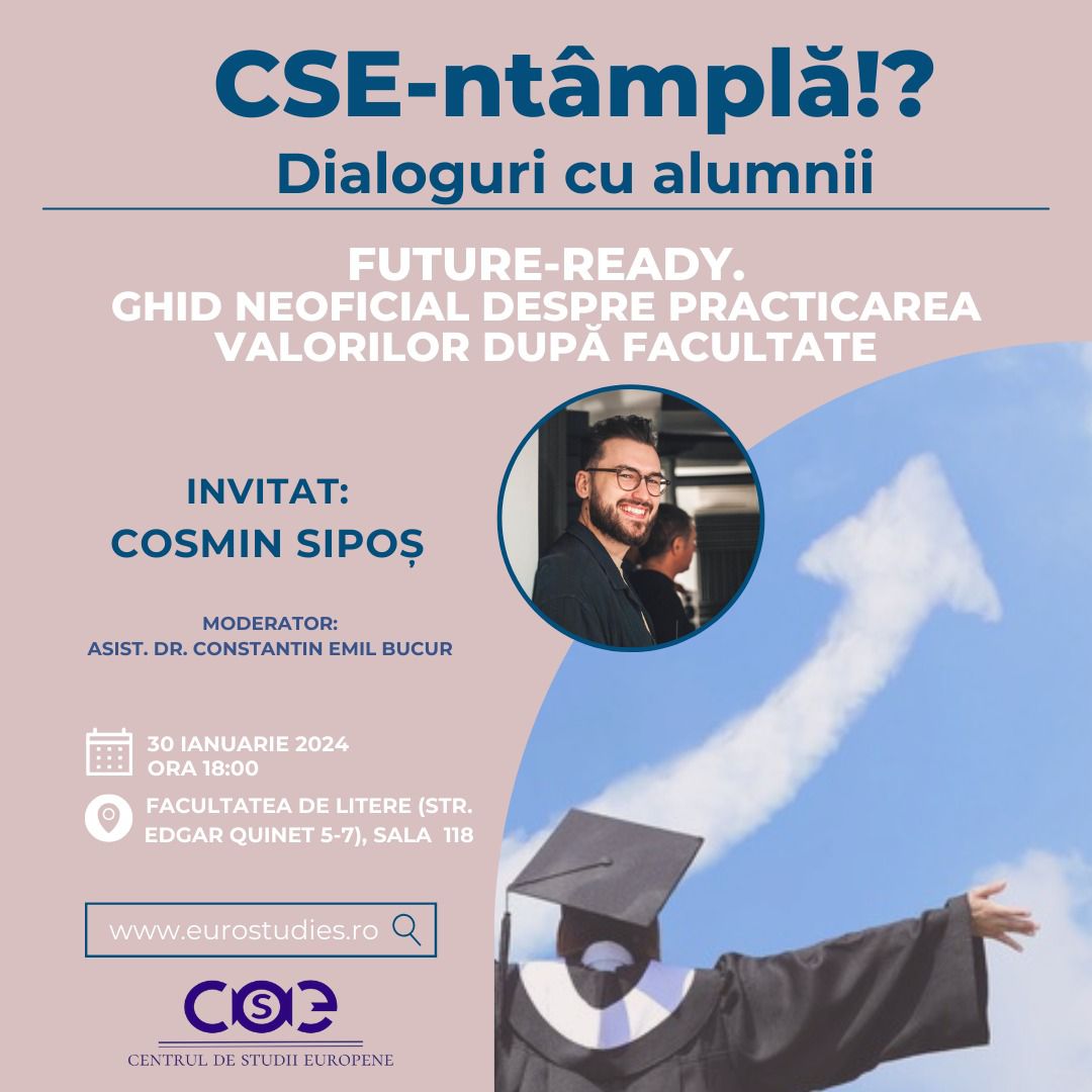 Studiile umaniste conferă absolvenților abilități diversificate, care le oferă numeroase oportunități de carieră, dar care, totodată, fac dificilă alegerea unui traiect profesional după finalizarea studiilor. Programul CSE-întâmplă!? Dialoguri cu alumnii încearcă să ajute studenții și absolvenții în acest sens, prin intermediul unor întâlniri lunare cu absolvenți ai programelor de studii din cadrul Facultății de Litere, Universitatea din București. Scopul programului este acela de a facilita transmiterea experiențelor personale ale tranziției de la statutul de student la cel de angajat.